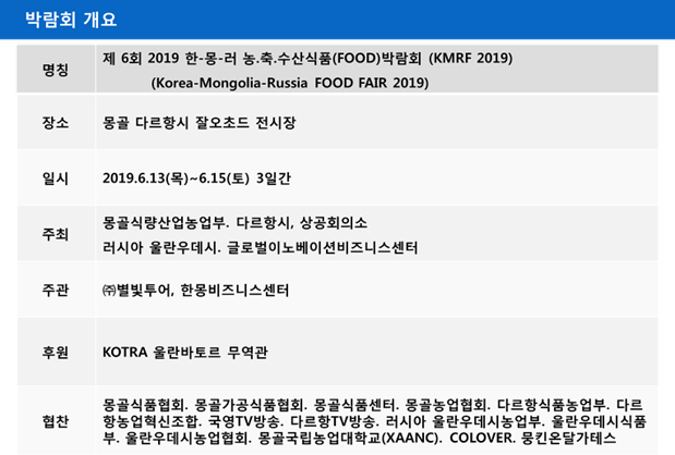 주최 : 몽골식량산업농업부. 다르항시, 상공회의소
