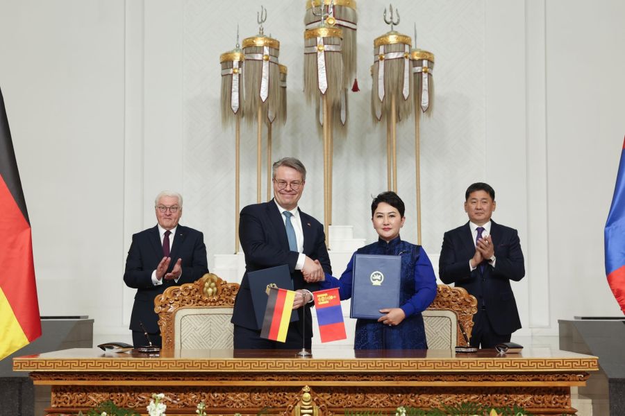 이번 국빈방문 기간에는 몽골과 독일의 관계 및 협력에 관한 문서 서명식이 거행됐다. 이날 행사에는 후렐수흐 몽골 대통령과 슈타인마이어 독일 대통령이 참석했다.