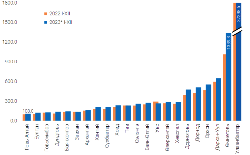 2023년 소매 무역의 판매 수익은 26조 3천억 MNT, 도매 무역의 매출 수익은 17조 7천억 MNT에 달해 2022년보다 2조 4천억 MNT 증가할 것입니다.