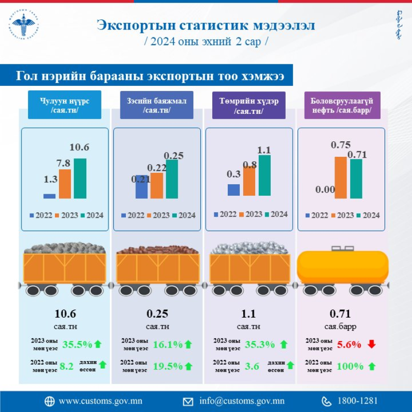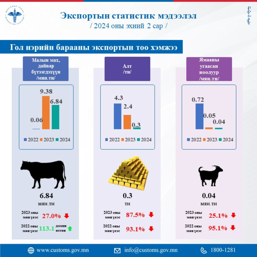 | 2023년 국내 무역소득 17.6% 증가, 무역 부문 매출 수익 44조 MNT. 식품 도매 및 소매 10조. 비식품 무역 34조 MNT 증가 (0) | 2024.02.14 |