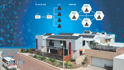 지난해 12월3일 호주의 서부 항구도시인 프리맨틀시. 마틴 안다(58)는 밤 10시 퇴근 후 컴퓨터를 켰다. 그는 컴퓨터 모니터에서 오늘 모은 전기 에너지를 확인할 수 있었다. 낮 동안 지붕 위에 설치한 태양광 패널을 통해 모은 태양광 에너지 전력과 거래 체결 시스템을 확인한다. 그는 전날 밤 1㎾당 최대 9.9센트면 사고, 최소 14센트에 팔도록 가격 설정을 해뒀다. 이날은 거래가 안됐지만 설정해둔 가격대에 사려는 소비자가 있다면 안다도 모르는 사이에 거래는 이뤄지고, 안다 집에 모아둔 태양광 에너지는 이웃에게 전달된다. 그 역시 태양광 에너지를 이웃 주민으로부터 언제든지 살 수 있다. “에너지 프로슈머 세상이 된 것”(동국대 박성준 블록체인센터장)이다.