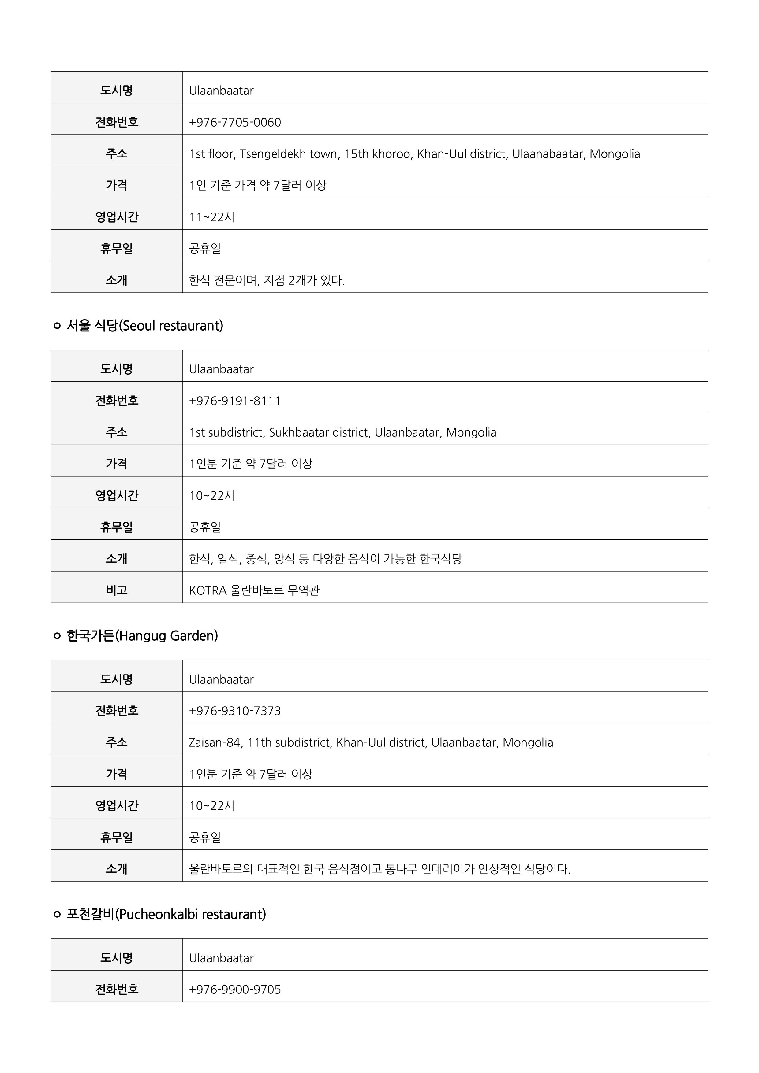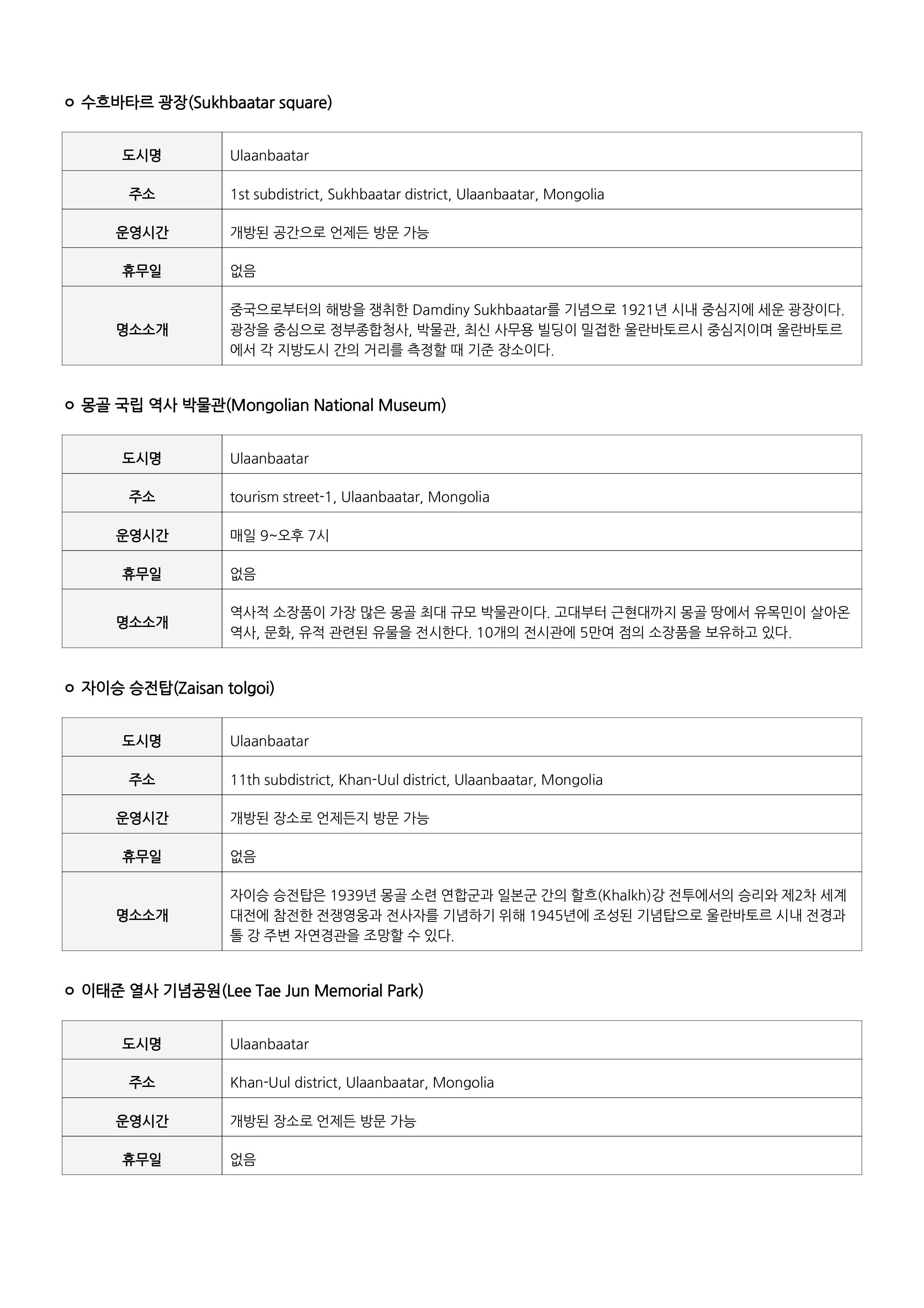수도 : 울란바토르(Ulaanbaatar), 서울의 7.7배
