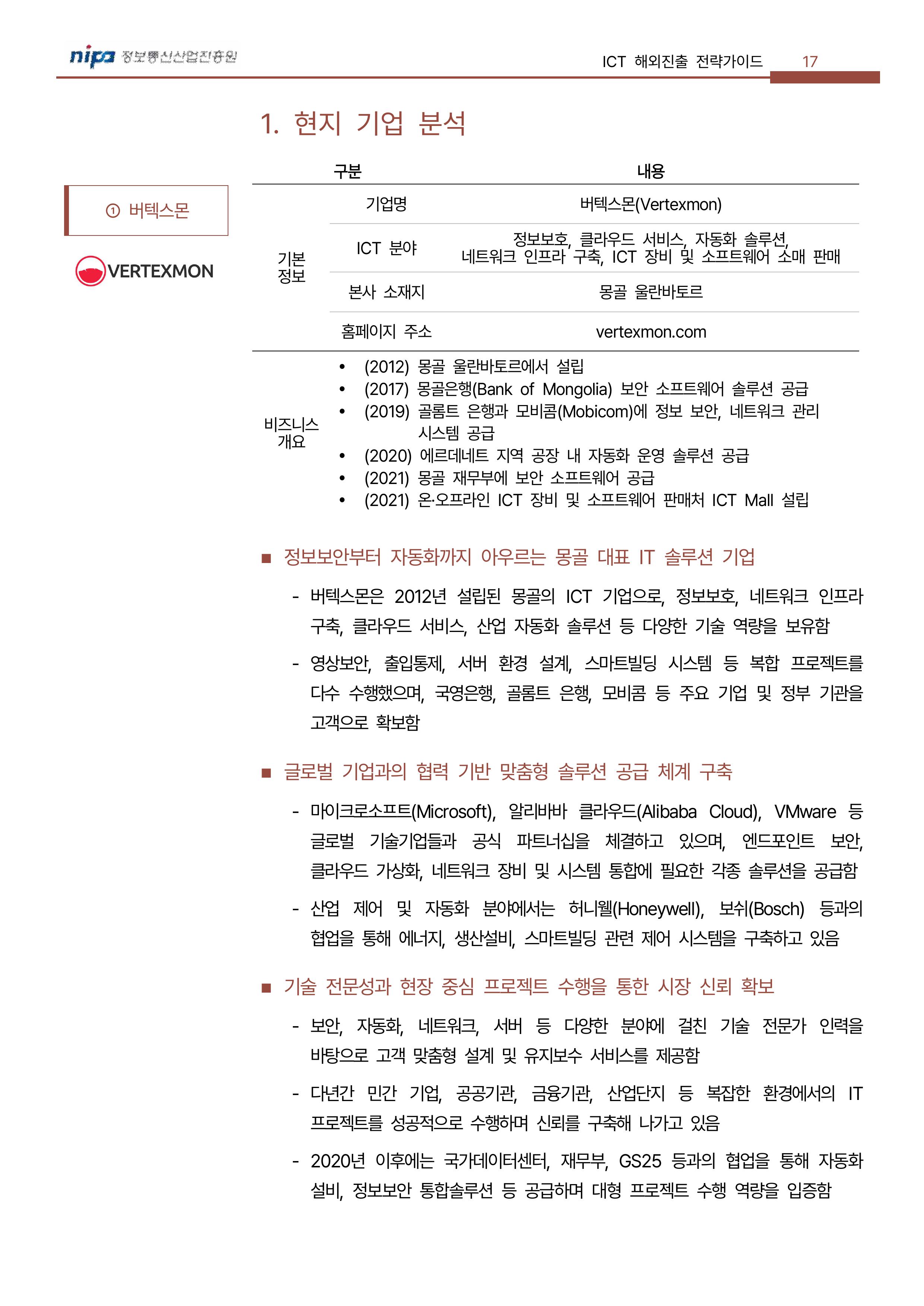 - 몽골은 지방 지역의 디지털 전환을 가속하기 위해 5개년 잘번 프로젝트 'E-Province' 프로젝트를 개발하였으며 해당 프로젝트는 정보기술을 기반으로 제품, 서비스 및 운영 프로세스에 대한 내용을 포함함